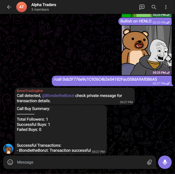 2️⃣ Use `/call [token address]` to **initiate a trade signal**.\